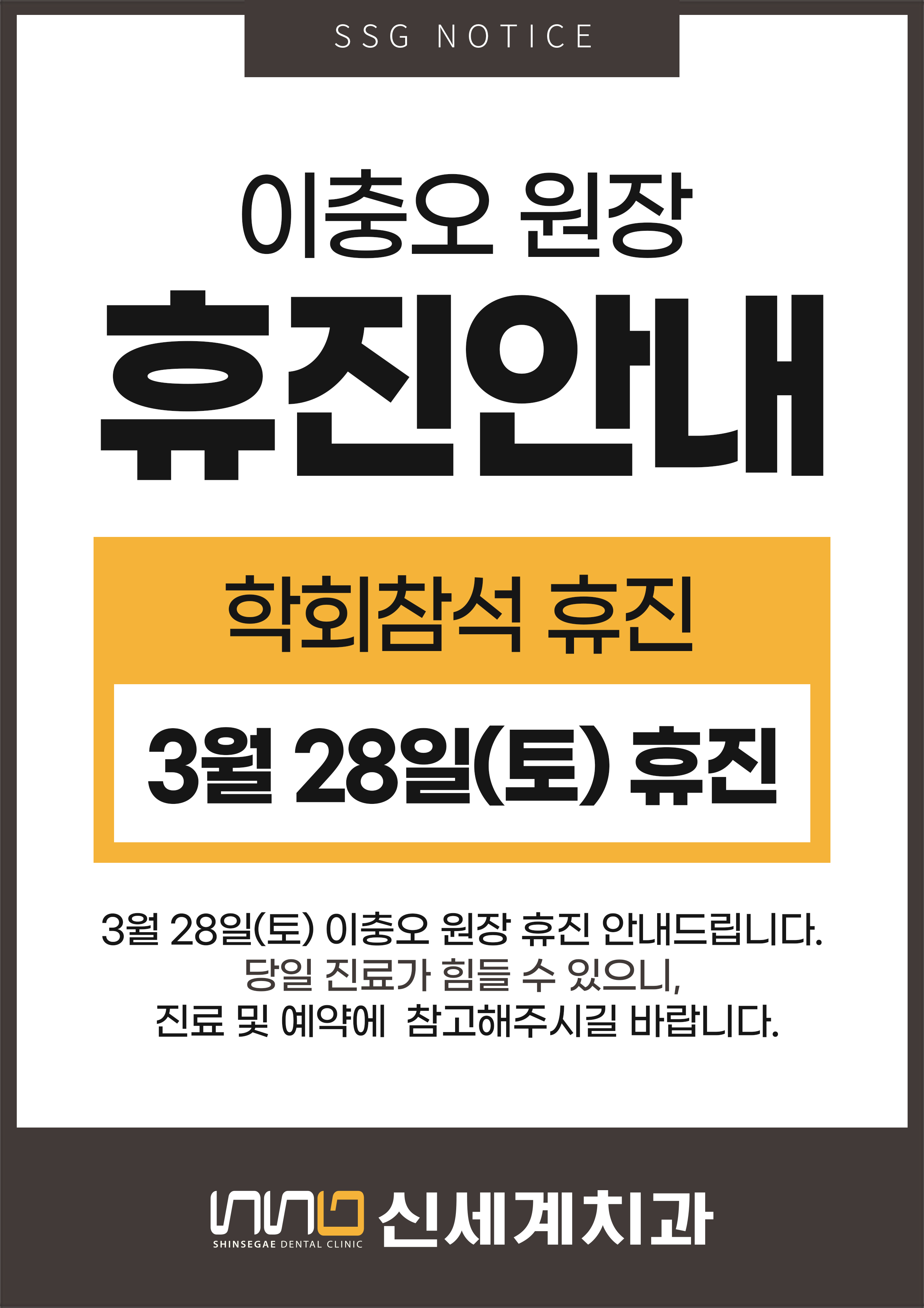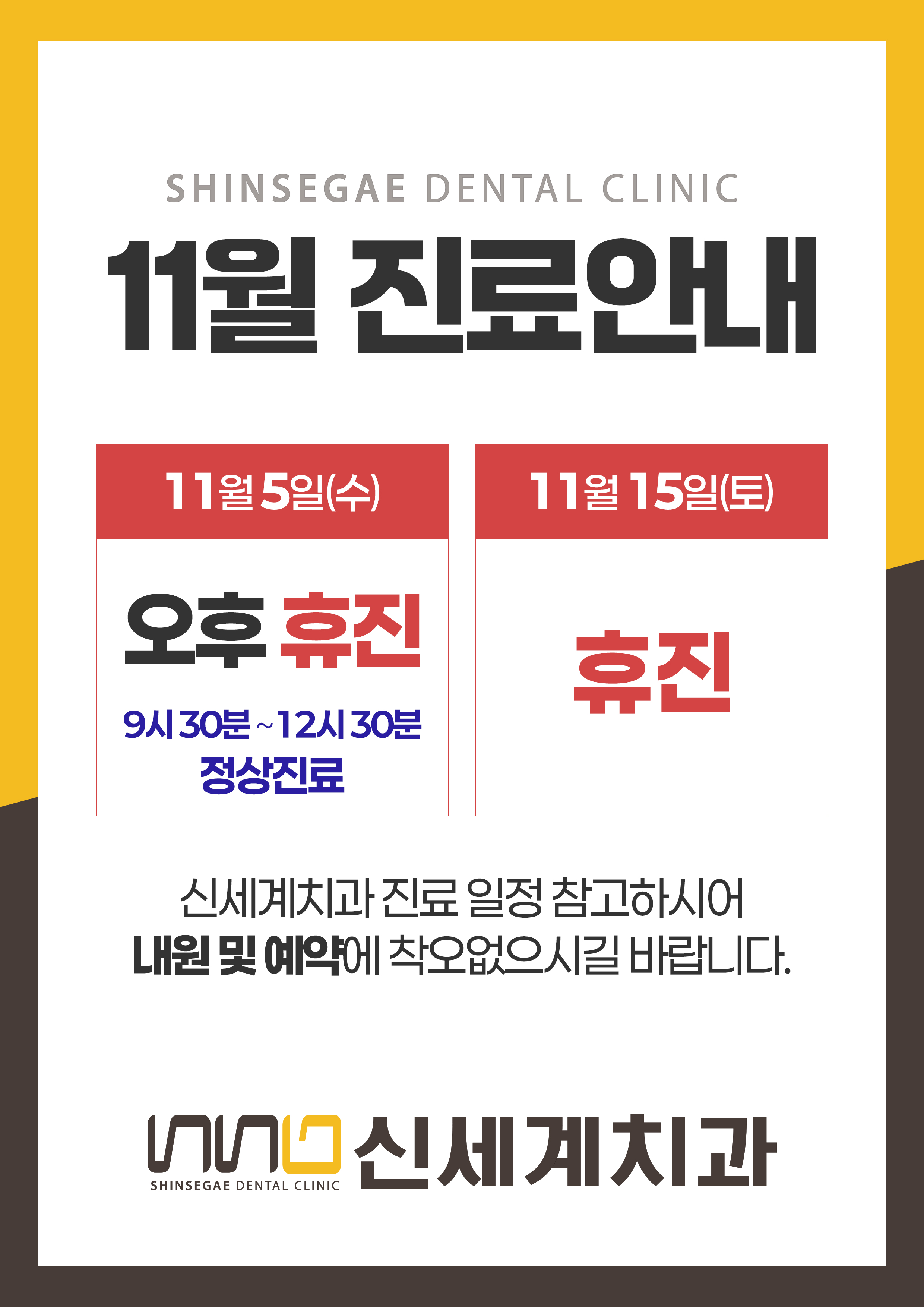 ※ 목요일 오전은 치과대학 강의가 있어 휴진입니다.